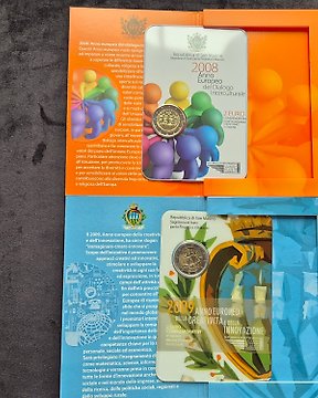 San Marino. 2 Euro 2008/2009 "Dialoguo Interculturale" + "Creatività e Innovazione" (2 stuks) (No Reserve Price)