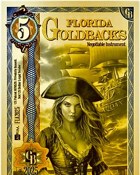 United States. 5 Goldbacks 2025 Florida "Pirate Woman of the Caribbean" 1/200 Oz (Au.999) (No reserve price)