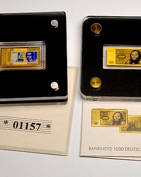 Germany. German Einheit 1/500oz (.999) + 24K Gold Plated Medal + 3 Gram Gold Leaf Can Box (No reserve price)