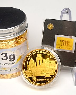 Germany. German Unity 1/500oz (.999) gold Medal + 24K Gold Plated Medals Berlin, gold-filled nuggets (No reserve price)