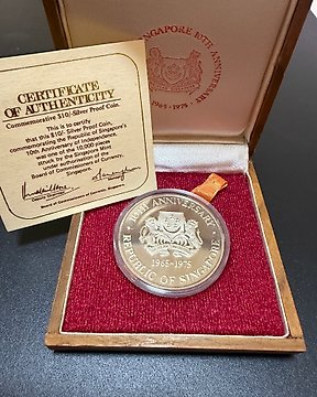 Singapore. 10 Dollars 1975 Proof. 10th Anniversary of Independence, with COA "Numbered 00512/10000" (No reserve price)