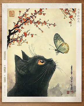 Kodo88 Giclée - Jiji and the Pink Butterfly at Mt. Fuji 富士山のジジと蝶 – Limited Edition (9/10) – Hand Signed