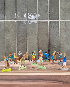 Statuette, Lot de figurines Tintin – Ensemble de 15 personnages en métal peint – Collection vintage - Hergé - 6 cm - Metal