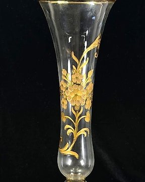 "Arte di Murano A. Morgillo"- Anni ‘80 - Vaso Vetro di Murano Trasparente - Altezza 47 cm - Vase - Hand-Carved Floral Decoration Decorated in Zecchino Gold - .