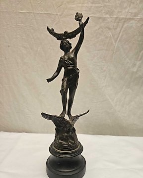 Marcel André Bouraine (1886-1948) - after - Sculpture, Diana with Jumping Fawns - 35 cm - Bronze, Onyx