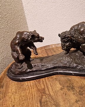 Antoine-Louis Barye (1796-1875) - Statue, Groot Bronzen beeld van Antoine-Louis Barye - 22 cm - Bronze, Marble - 1875