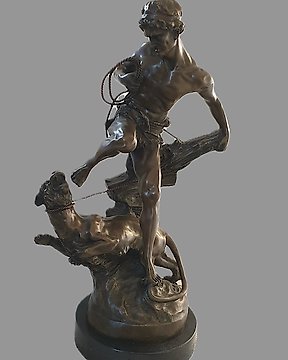 After Barye - Statue, Roman warrior fights a tiger - 20 kg - 60 cm - Patinated bronze