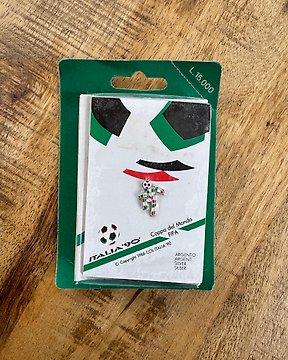 Official Italia '90 FIFA World Cup Silver Lapel Pin – Sealed in Original Blister Pack - Football World Championships - 1990 - Pin