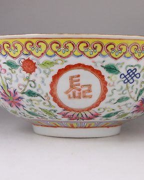 Kangxi (1662-1722) - VERY LARGE - Bowl - Large Fluted Lotus, Peonies, Plum Blossom and Chrysanthemum Charger - Artemisia with Ribbons Mark - Porcelain - Persian or Dutch Market