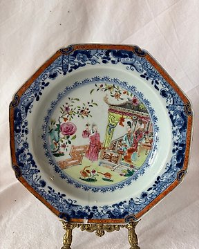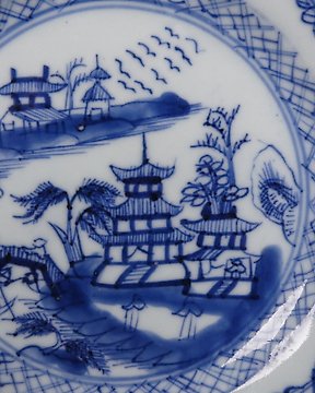 Qianlong (1735-1796) - Plate - Houses, Boats and Rocks in a Mountainous River Landscape -Six Persons! - Porcelain - Six Persons!