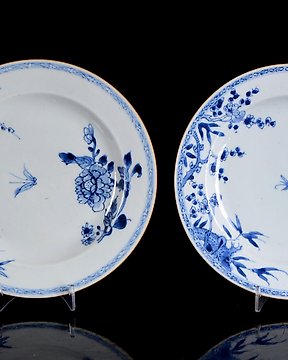 A pair of Chinese blue and white 'Floral' plates - NO RESERVE - Porcelain - China - Qing dynasty (大清), Qianlong period (1735-1796, 乾隆), 18th c.