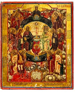 Icon - Mother of God of the Burning Bush, saint Michael and selected saints - Wood