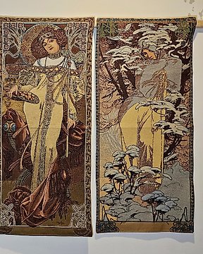 Alphonse Mucha (après) - Wall mirror (4)- "The Times of the Day (1899)" complete series - Crystal, Wood, Golden frames - Numbered