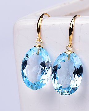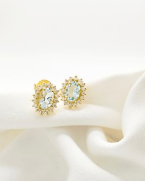 No Reserve Price - Earrings - 14 kt. Yellow gold Topaz - Aquamarine