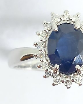 No Reserve Price - Ring - 18 kt. White gold Sapphire - Diamond