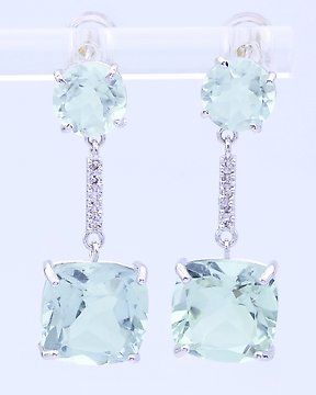 No Reserve Price - Earrings - 14 kt. White gold Quartz - Diamond