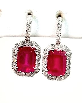 Brooch - 18 kt. White gold - 11.00ct. tw. Diamond (Natural) - Ruby