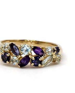 No reserve price - Cocktail ring - 9 kt. Yellow gold, Natural Aquamarine & Amethyst - Wedding Cocktail Cluster