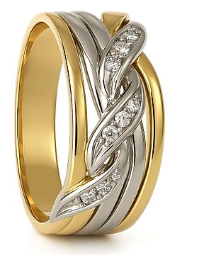 Ring - 18 kt. White gold, Yellow gold - 0.09ct. tw. Diamond (Natural)