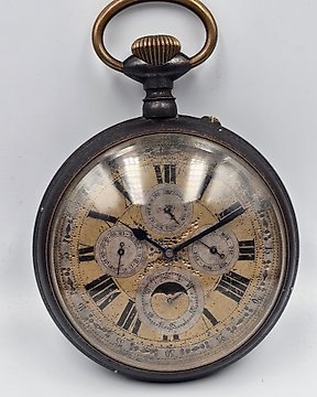 Antique Triple Calendar Moon Phase steel Goliath Pocket Watch - Goliath - 1850-1900