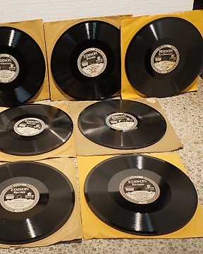 18 original pre-war 78 RPM shellac records, dating from 1928 to 1939. o.a. Jack Hylton, Sophie - Billy Cotton, Nelson Eddy ; Speak Easy, A Hunting morning, Dusty Road, Ain't It Great To Be Home - 78 RPM shellac record - 1928
