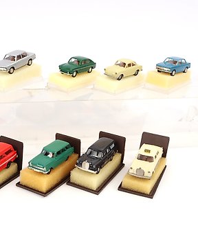 Brekina H0 - Model train vehicles (10) - Ten diverse model cars, including police and Wienerwald taxi.