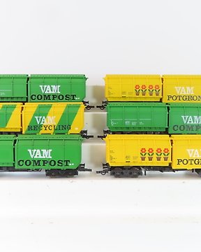 Roco H0 - 4368/4368B/4368S/43228 - Model train freight carriage (6) - 6x 4-axle container wagons with markings 'VAM Compost,' 'VAM Potgrond,' and 'VAM Recycling.' - NS