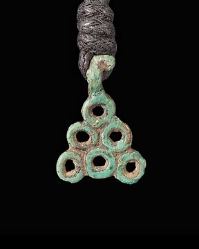 Viking Era Bronze, Beautifully decorated Viking protective pendant shaped like an open plant, 30 mm, 9th century. Pendant (No reserve price)