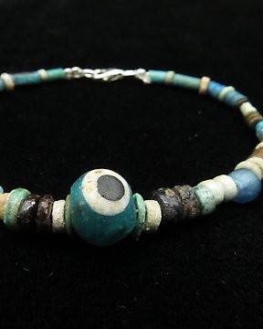 Ancient Egyptian Bracelet made of decorated Glass and Faience Mummy beads - 16.5 cm (No reserve price)