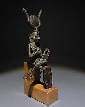 Ancient Egyptian Bronze Isis breastfeeding Harpocrates figure. Late Period, 664 - 332 B.C. 13.2 cm height.