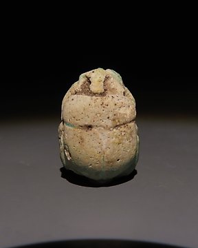 Ancient Egyptian Glassed Steatite Scarab. Second Intermediate Period or New Empire, 1640 - 1070 BC. 1.9 cm height.