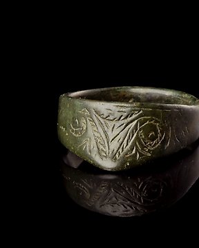 Medieval, Crusaders Era Bronze Ring with Star of Bethlehem and Palm frond (No reserve price)