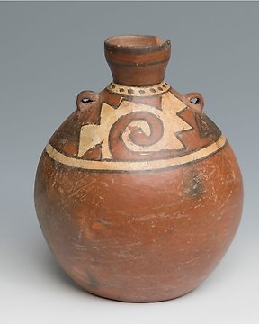 Vicus, Peru Terracotta Figurative vessel with handle. PUBLISHED. 25 cm H. 500 BC - 400 AD. Spanish Export License