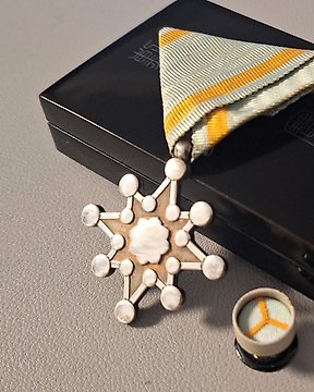 Japan - Army/Infantry - Medal - Silver(goldplated)Order Of The Sacred Treasure 7th Class with silk ribbon,badgepin and box with