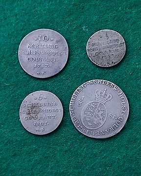 Germany - Schleswig and Holstein Christian VII.. 2 1/2, 5, 10 Schilling, 1/3 speciedaler (20 schilling courant) 1787-1801 (No reserve price)