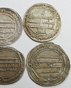 Islamic. Abbasid Caliphate – Group of 4 Abbasid Silver Dirhams 8th to 9th Century AD. Muhammadiya, Jay, Samarqand and Madinat al-Salam mints (No reserve price)