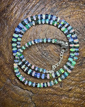 Necklace of natural black and white opals from Ethiopia + 925 silver. 43.00 carats. Price upon Jewellery- 8.6 g
