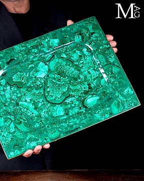 Luxury Tray - AAA Quality Malachite - Katanga Mines - Elegant Brass Finishes - Height: 436 mm - Width: 334 mm- 3283 g