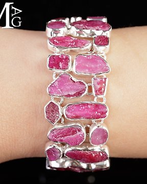 Incredible Natural Rubies Mosaic - Exclusive Silver Bracelet - Certified Italian Jewel - Unique - Height: 200 mm - Width: 25 mm- 63 g