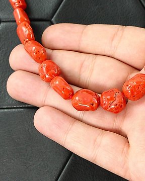 Genuine Red Coral "Corallium rubrum" Red Mediterranean Coral Necklace – Sardinia - Height: 680 mm - Width: 17 mm- 78 g