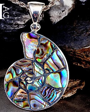 Ammonite-shaped pendant with abalone mother-of-pearl inlays - exclusive silver jewel - Height: 42.5 mm - Width: 25.5 mm- 9 g
