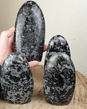 Collection of beautiful Grabo Merliniet gemstone sculptures. - Height: 15 cm - Width: 3 cm- 2.3 kg - (4)