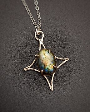 Unique and handcrafted jewelry in 925 silver with top-quality Labradorite. - Height: 33 mm - Width: 25 mm- 4.3 g - (1)