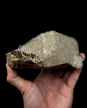 White calcite covered by limonite, shiny, Sardinia. Crystals on matrix - Height: 56 mm - Width: 55 mm- 205 g