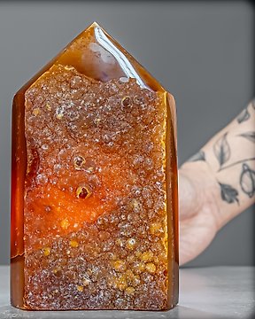 Magnificent pale pink calcite XXL in points. fluorescent in pink-orange - Height: 155 mm - Width: 80 mm- 738 g - (1)