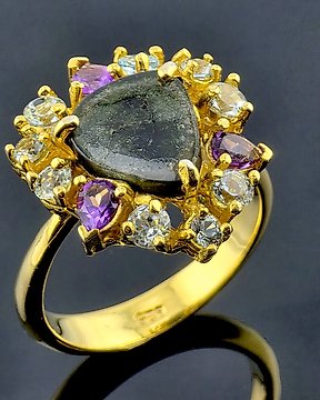 Ring - 18 kt. White gold - 0.88ct. tw. Sapphire - Diamond
