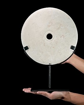 Decorative ornament - NO RESERVE PRICE -Beautiful Decorative White Marble Disc on a custom stand - Indonesia