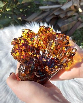 Baltic Amber jewelry holder , Amber (Lithuania), Resin, 2 Baltic Amber Sea shells - Height: 6 cm - Width: 13 cm- 444 g - (2)