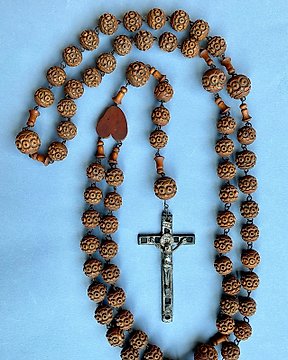 Antique Rosary - Wooden conventual rosary engraved with a metallic crucifix and wooden insert, Italy, early 20th - 1910-1920 - Conventual rosary