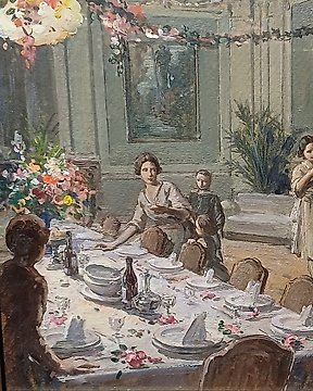 ARVY - Pastello antico con cornice in legno intagliato raffigurante ritratto di famiglia. Roma inizio XX